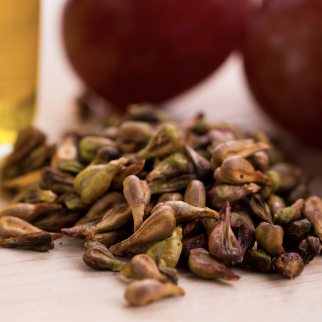 Nuestro ingrediente más preciado. Directamente extraído de la Brisa de la uva producida en las viñas ecológicas de Can Sadurní, este ingrediente concentra los antioxidantes que quedan en las pieles y semillas de la uva prensada.