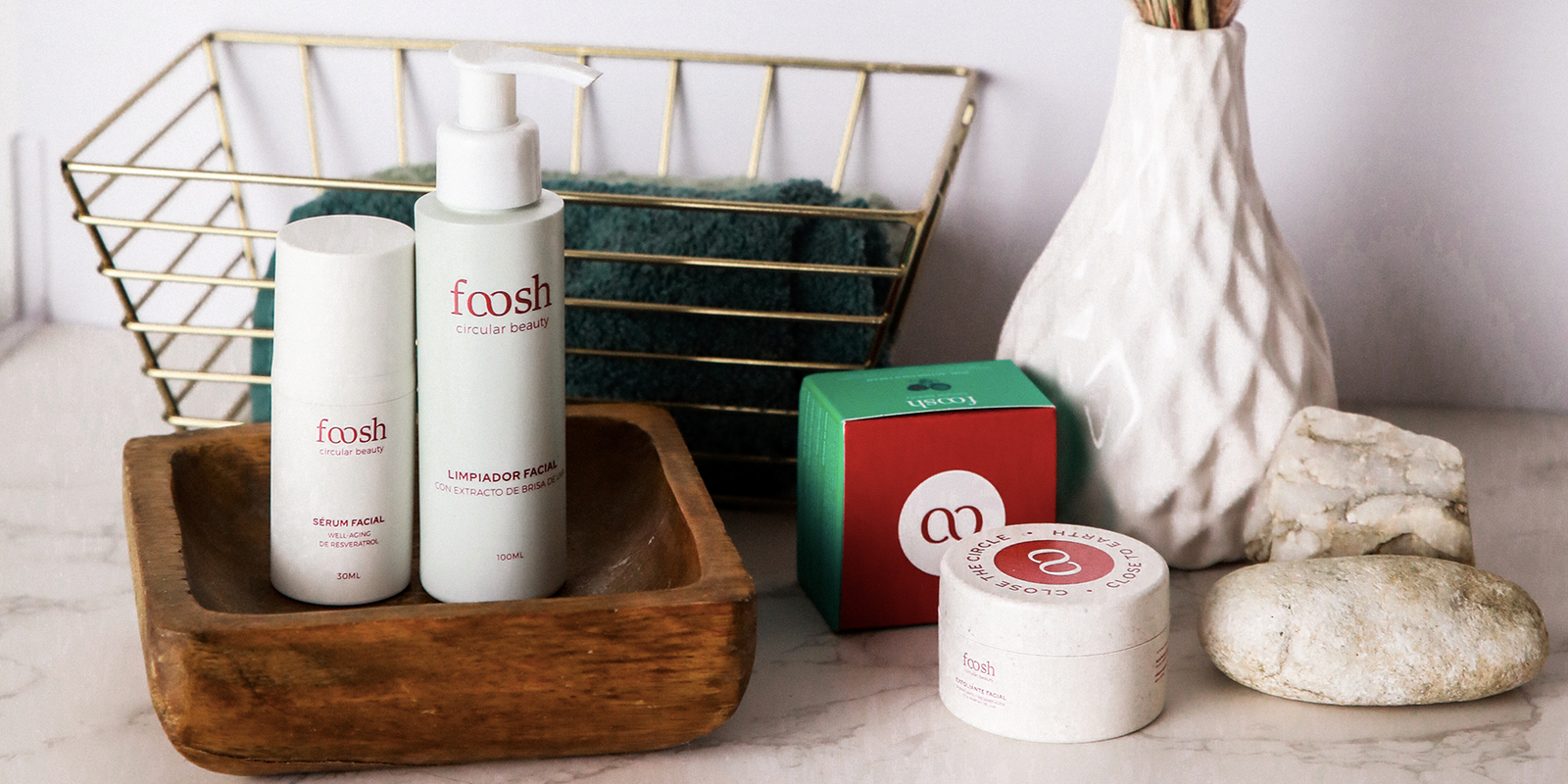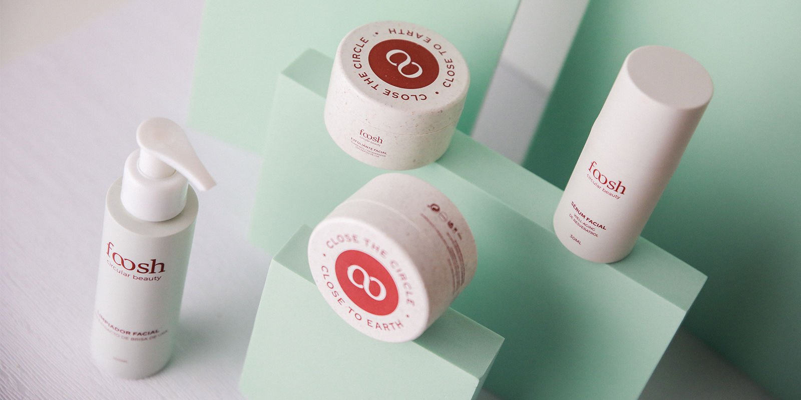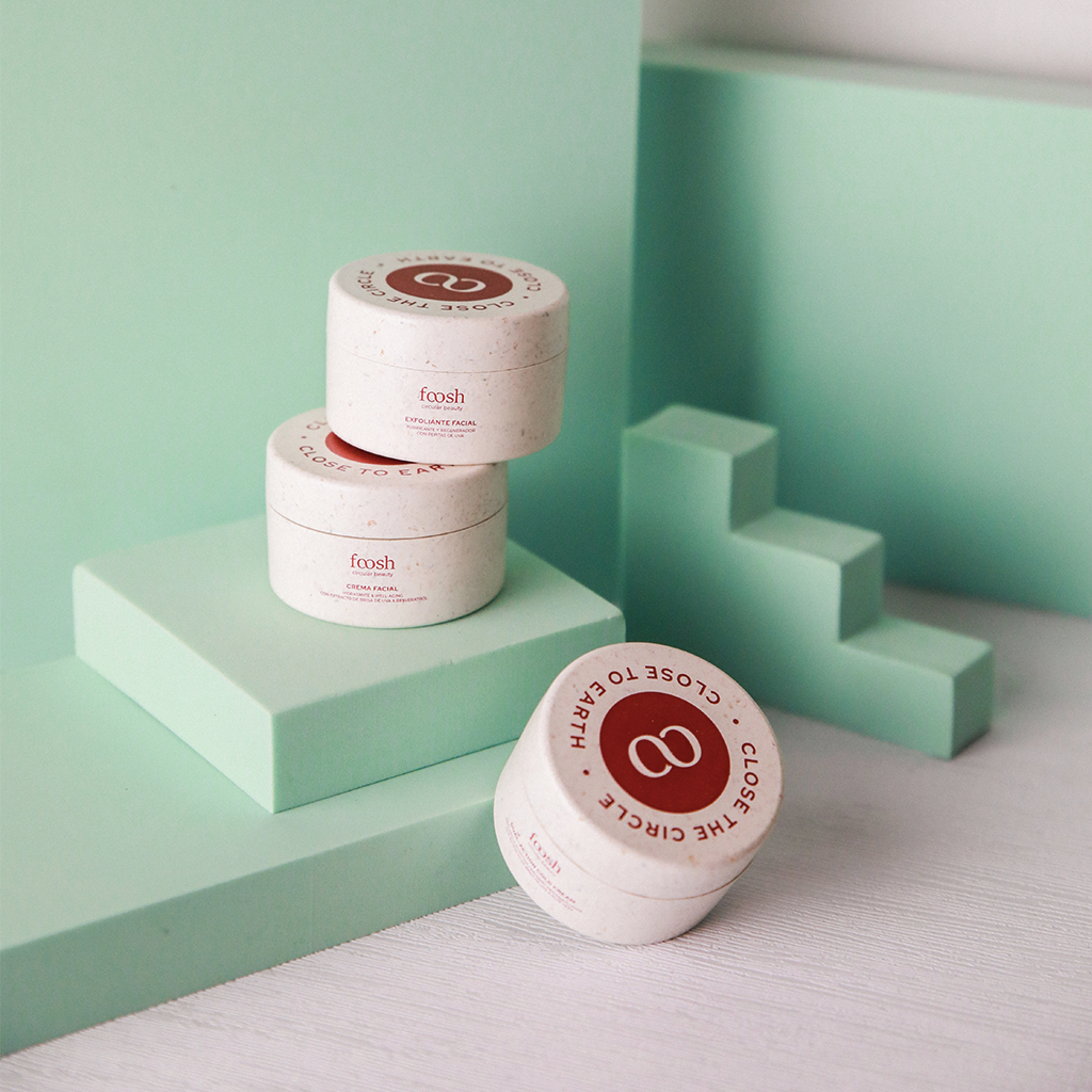 Por ahora, los tarros de crema y exfoliante son 100% biodegradables y los envases de sérum y limpiador son de plástico reciclado.